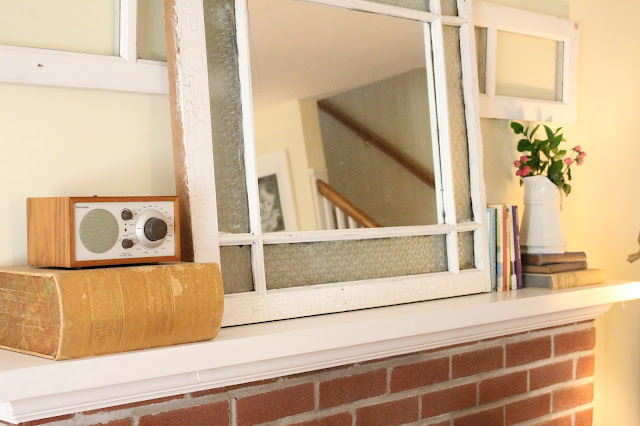 Aside from Christmas decorations I have not had this mantle "decorated" since we moved into this house over a year ago. I just had this kind of awkward piece of salvage on the wall that made sense when we had the television on the mantle but didn't once we moved it with a mirror propped up in front. The husband refuses to move the salvage because we have plaster walls and he doesn't want to deal with the aftermath. And I'm not going to do it myself because that's clearly man's work :)