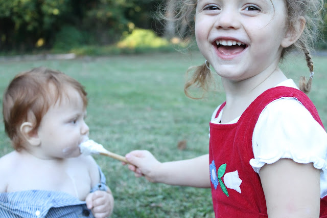 Christopher got a celebratory first bowl of ice cream on the lawn with no daddy at all since he is gone to work before anyone wakes up in the morning and comes home well after the baby is in bed.